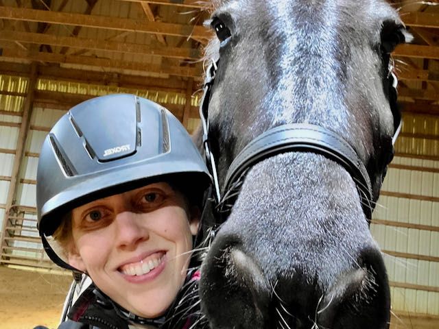 Terran’s love of horses blossomed when a one-time 10th birthday riding lesson quickly turned into a lifetime passion for horses. Over the years she has enjoyed sharing her love of horses with her students. She earned ARIA certifications in both Hunt Seat and Recreational Riding. Terran’s goal has always been to work with special needs riders. After semi-retiring from her CPA career in 2022, Terran began volunteering at Riding High Farm. Shortly after, she transitioned to instructor. Terran enjoys camping, hiking, and boating with her family when she is not “horsing around.”